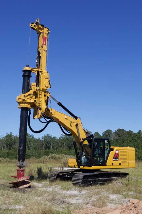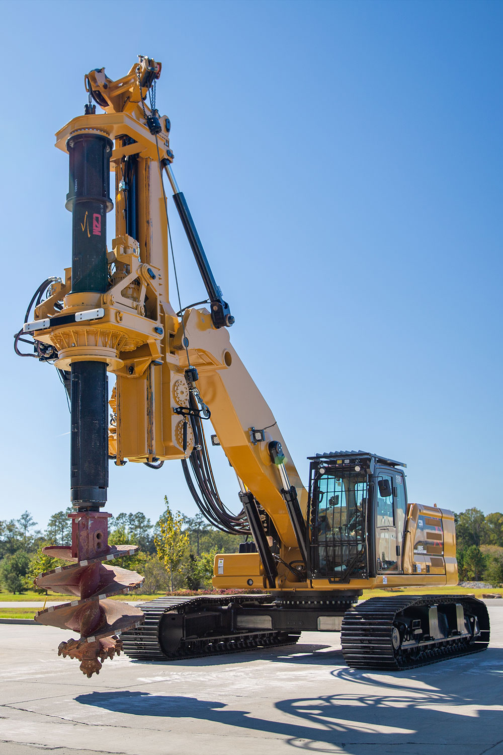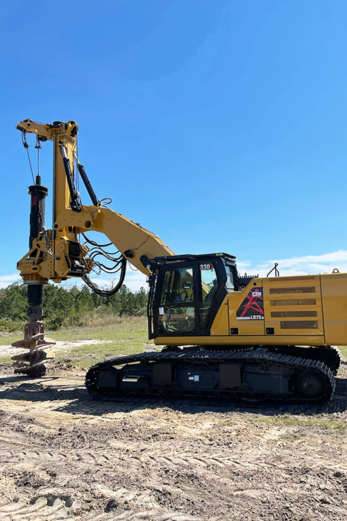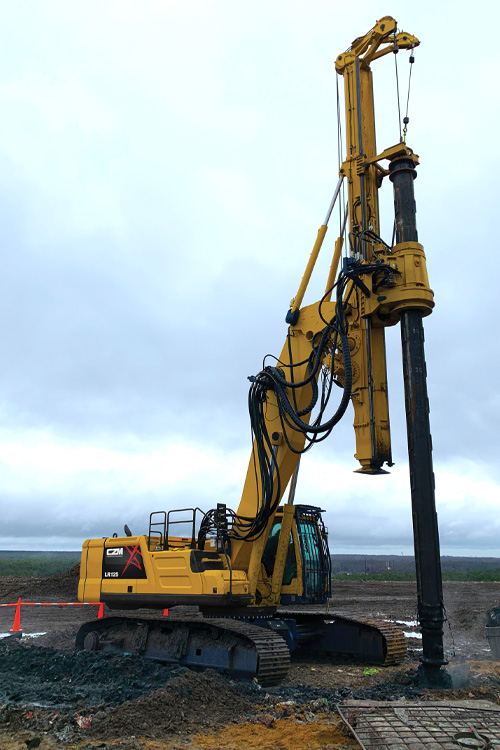 The LR160 is CZM’s largest drilling rig of the Long Reach series, and it is mounted on a Cat® 340 Next Gen and has a special designed boom with 2 lift cylinders which allows for a higher torque and crowd force to be applied to the tool, which aligned with interlocking Kelly bars makes it efficient on rock and hard soil drilling.